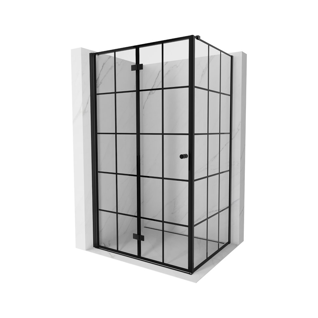 Mexen Mist-F T, 1-krídlový skladací sprchový kút ľavý 85 x 100 cm, čierna mriežka, čierny - 8A6T-085-100-70-77-L