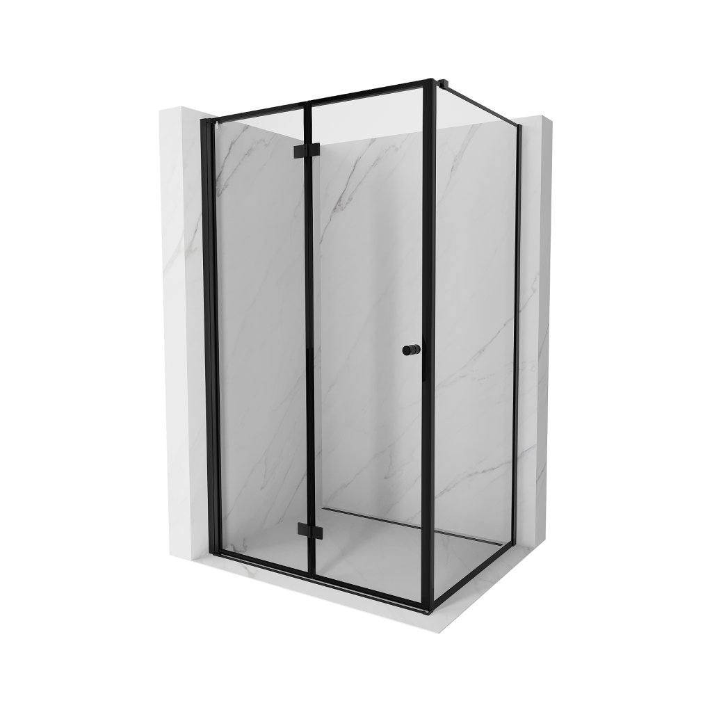 Mexen Mist-F T, 1-krídlový skladací sprchový kút ľavý 90 x 95 cm, číre sklo-čierny rám, 8A6T-090-095-70-70-L