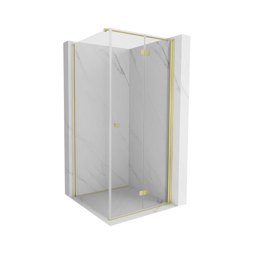Mexen Mist-F T, 1-krídlový skladací sprchový kút pravý 110 x 110 cm, číre sklo, zlatý matný profil, 8A6T-110-110-55-00-P