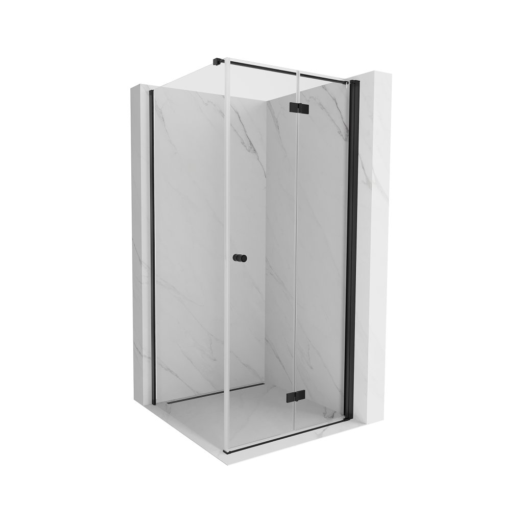 Mexen Mist-F T, 1-krídlový skladací sprchový kút pravý 75 x 75 cm, číre sklo, čierny profil, 8A6T-075-075-70-00-P