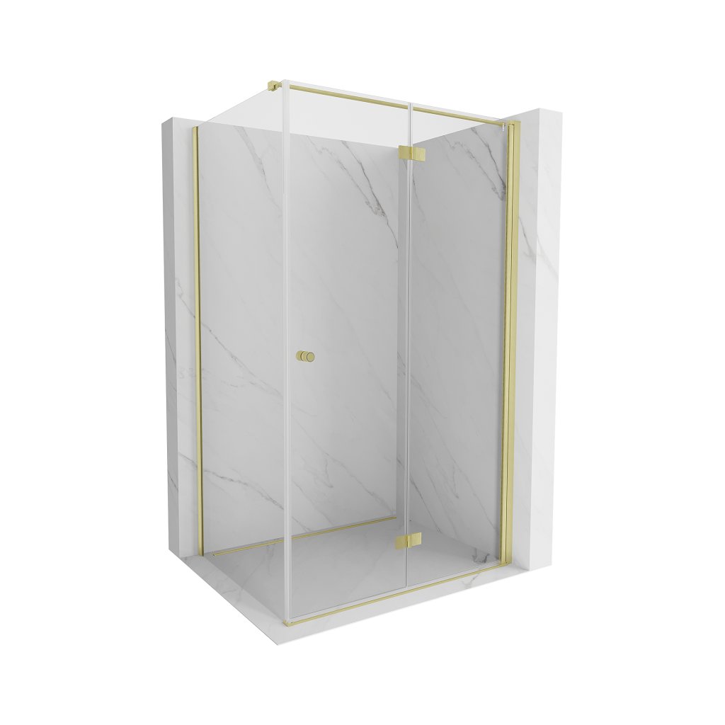 Mexen Mist-F T, 1-krídlový skladací sprchový kút pravý 90 x 95 cm, číre sklo, zlatý lesklý profil, 8A6T-090-095-50-00-P
