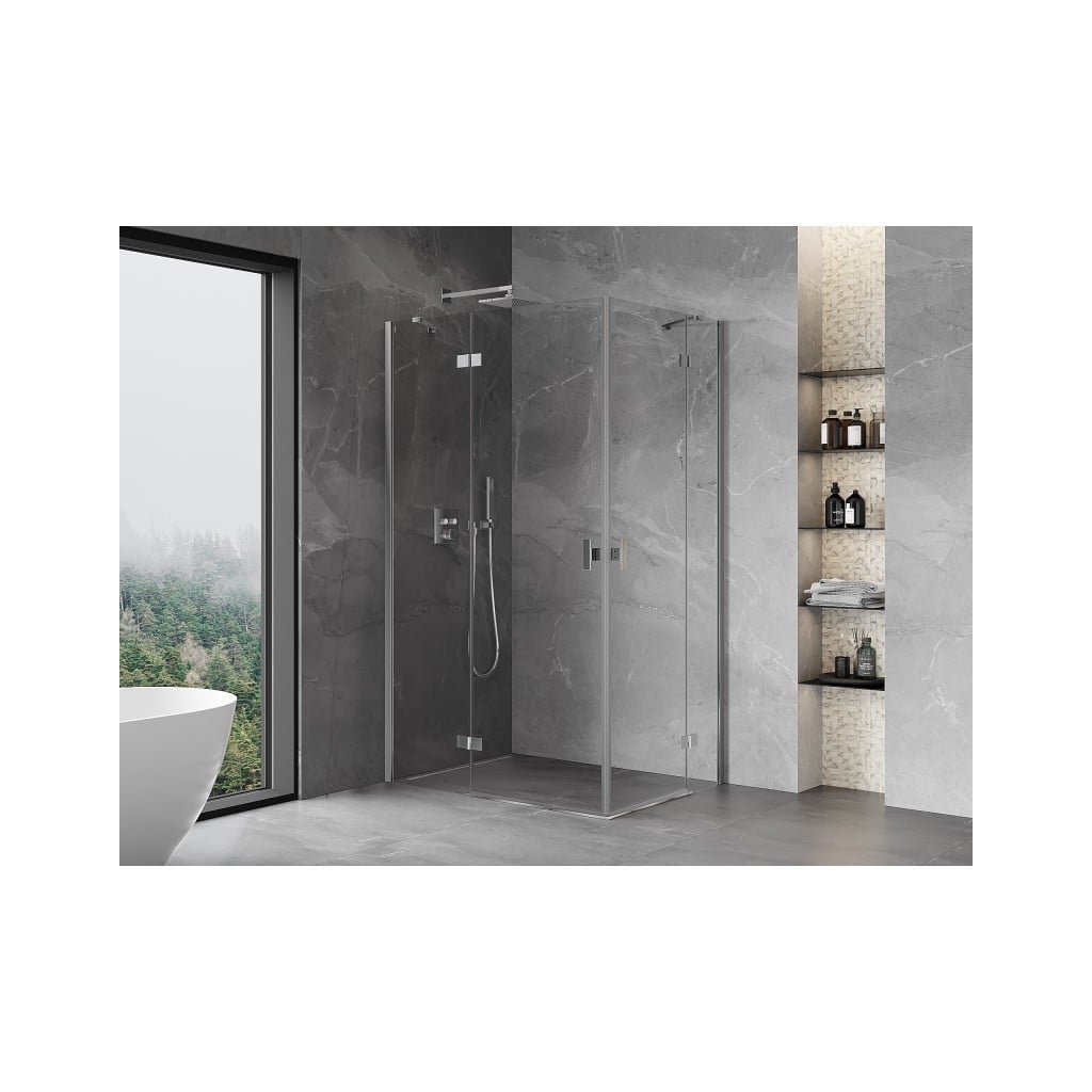Mexen Mist-H Duo, 2-krídlový výklopný sprchový kút 100 x 90 cm, číre sklo, chrómový profil, 8A5-100L-090P-01-00