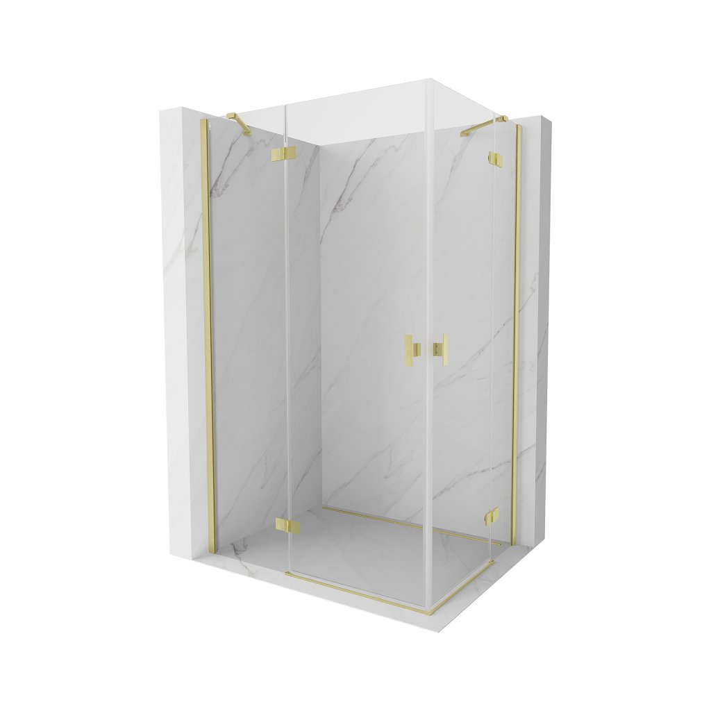 Mexen Mist-H Duo, 2-krídlový výklopný sprchový kút 100 x 90 cm, číre sklo, zlatý matný profil, 8A5-100L-090P-55-00