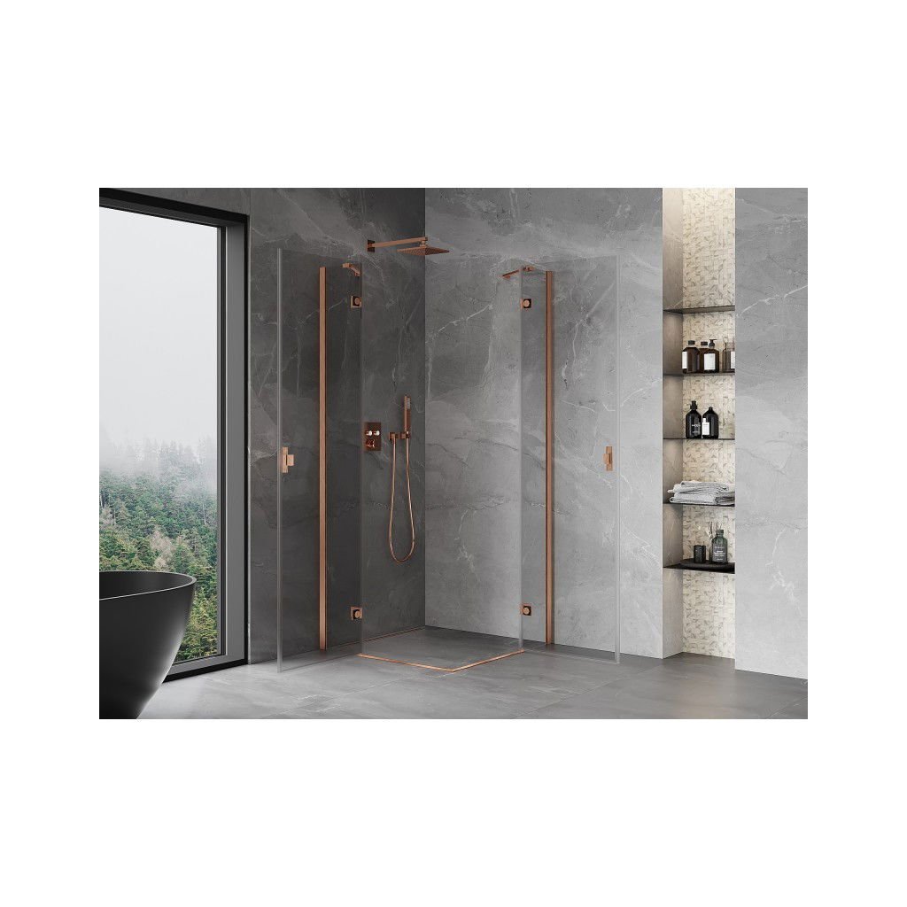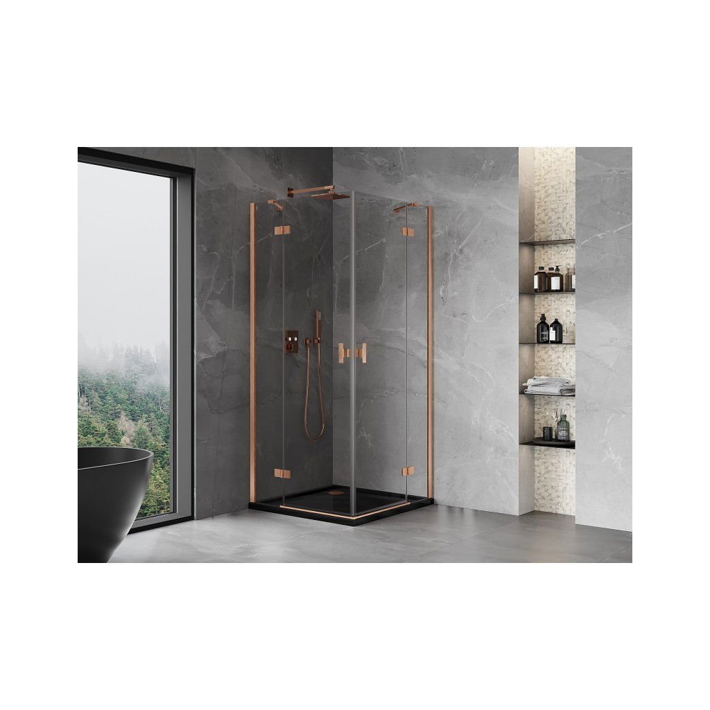 Mexen Mist-H Duo, 2-krídlový výklopný sprchový kút 105 x 105 cm, číre sklo, medený matný profil, 8A5-105L-105P-65-00