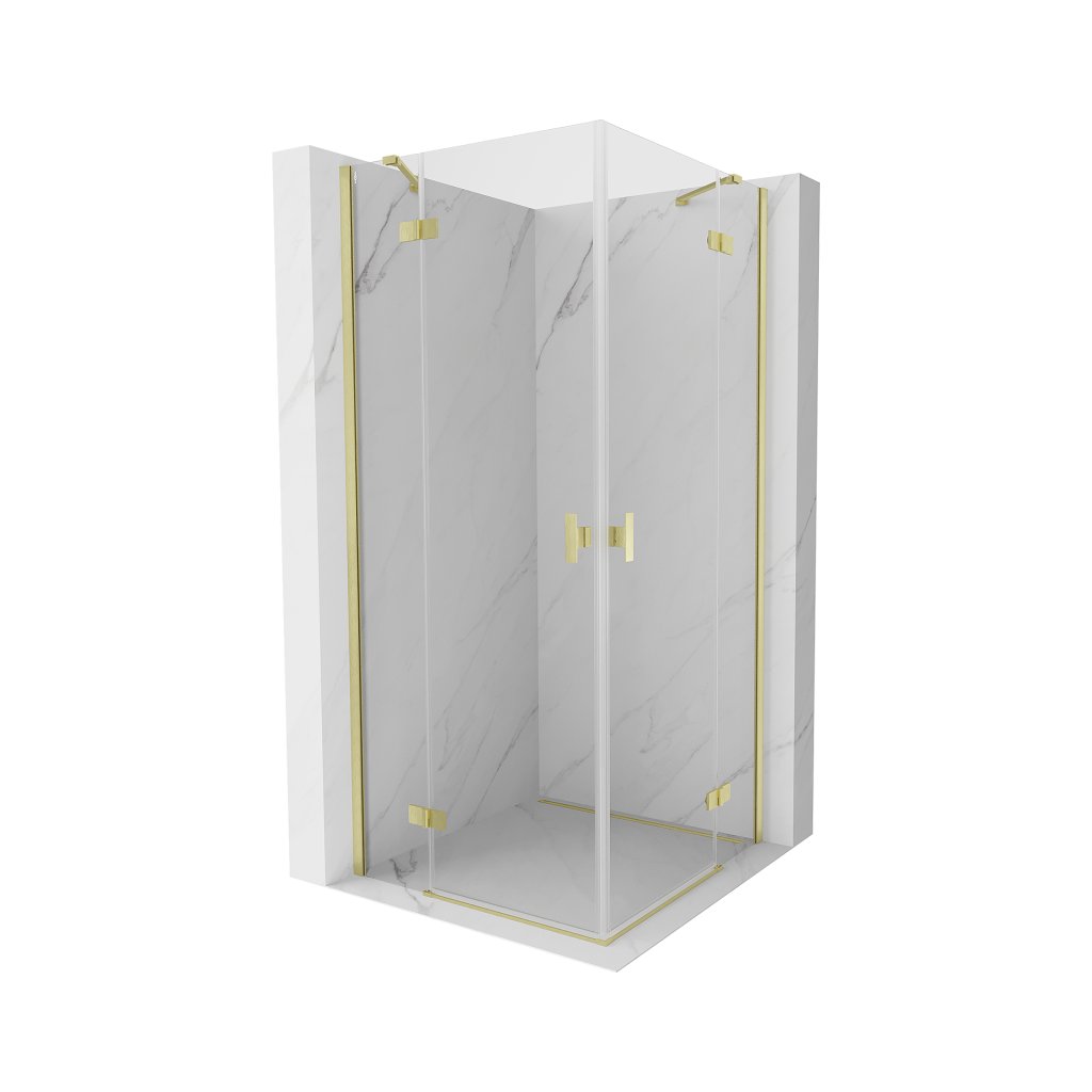 Mexen Mist-H Duo, 2-krídlový výklopný sprchový kút 105 x 105 cm, číre sklo, zlatý matný profil, 8A5-105L-105P-55-00
