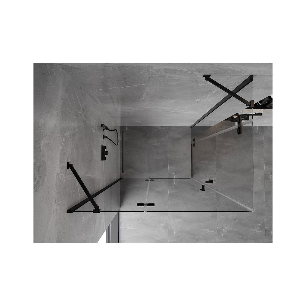 Mexen Mist-H Duo, 2-krídlový výklopný sprchový kút 110 x 95 cm, číre sklo, čierny profil, 8A5-110L-095P-70-00