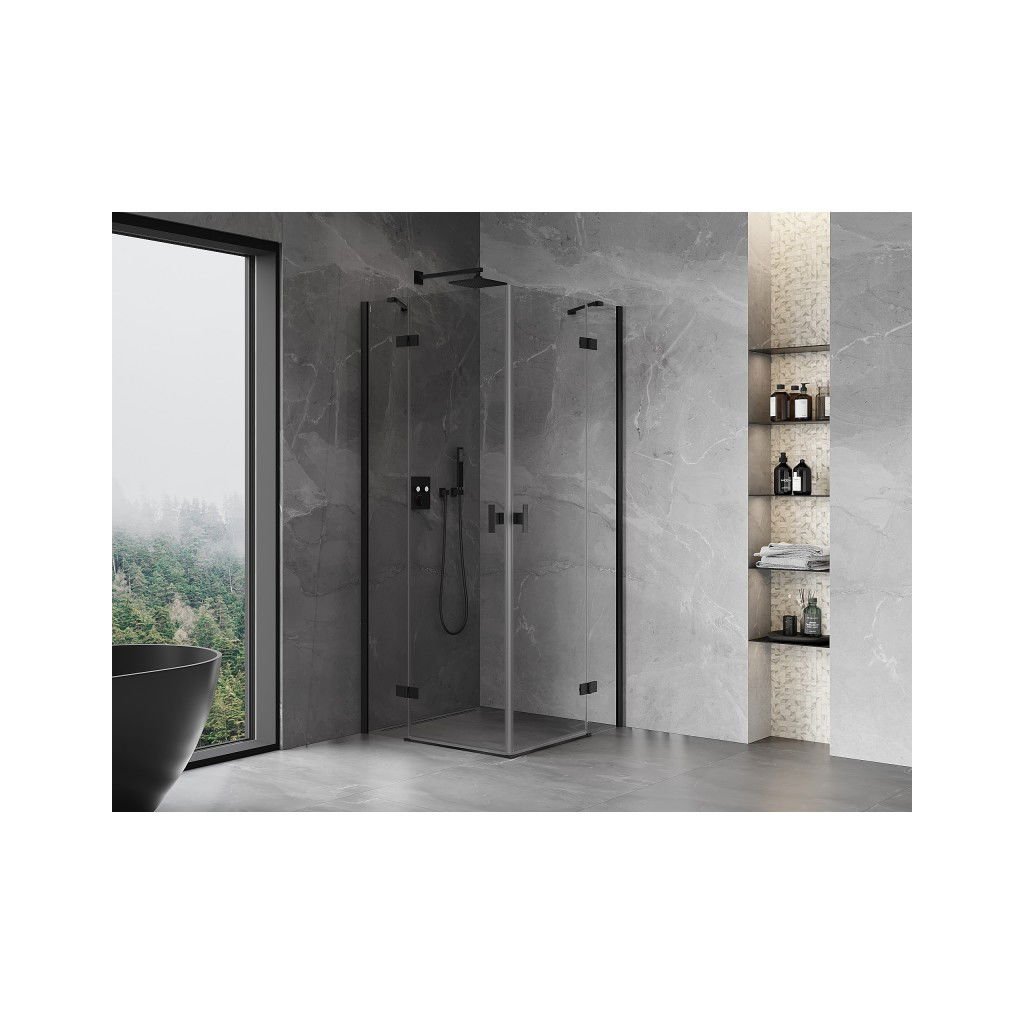 Mexen Mist-H Duo, 2-krídlový výklopný sprchový kút 115 x 115 cm, číre sklo, čierny profil, 8A5-115L-115P-70-00