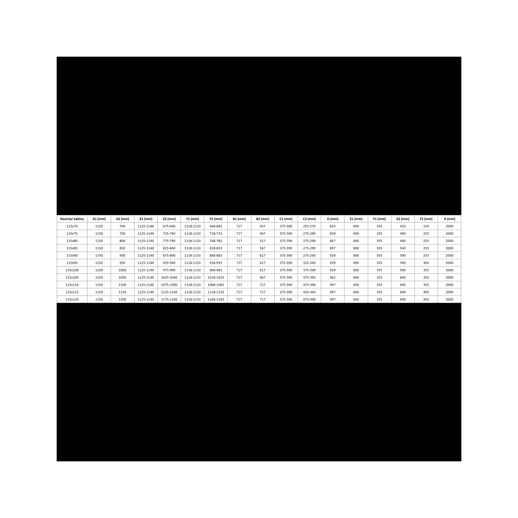 - Rozmer: 115x70 cm (ľavé dvere 115 cm, pravé dvere 70 cm)