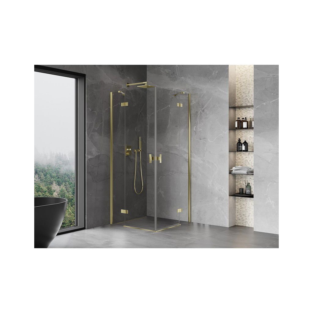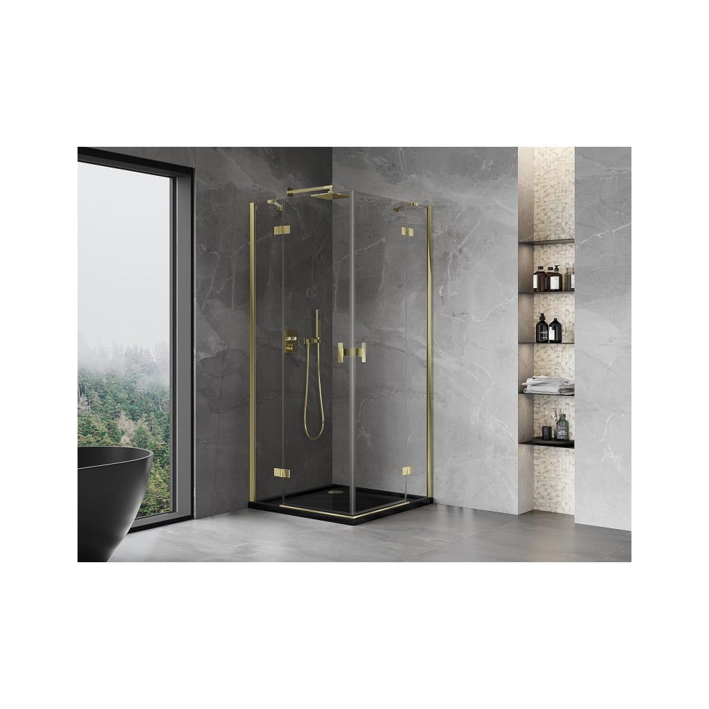 Mexen Mist-H Duo, 2-krídlový výklopný sprchový kút 70 x 70 cm, číre sklo, zlatý lesklý profil, 8A5-070L-070P-50-00