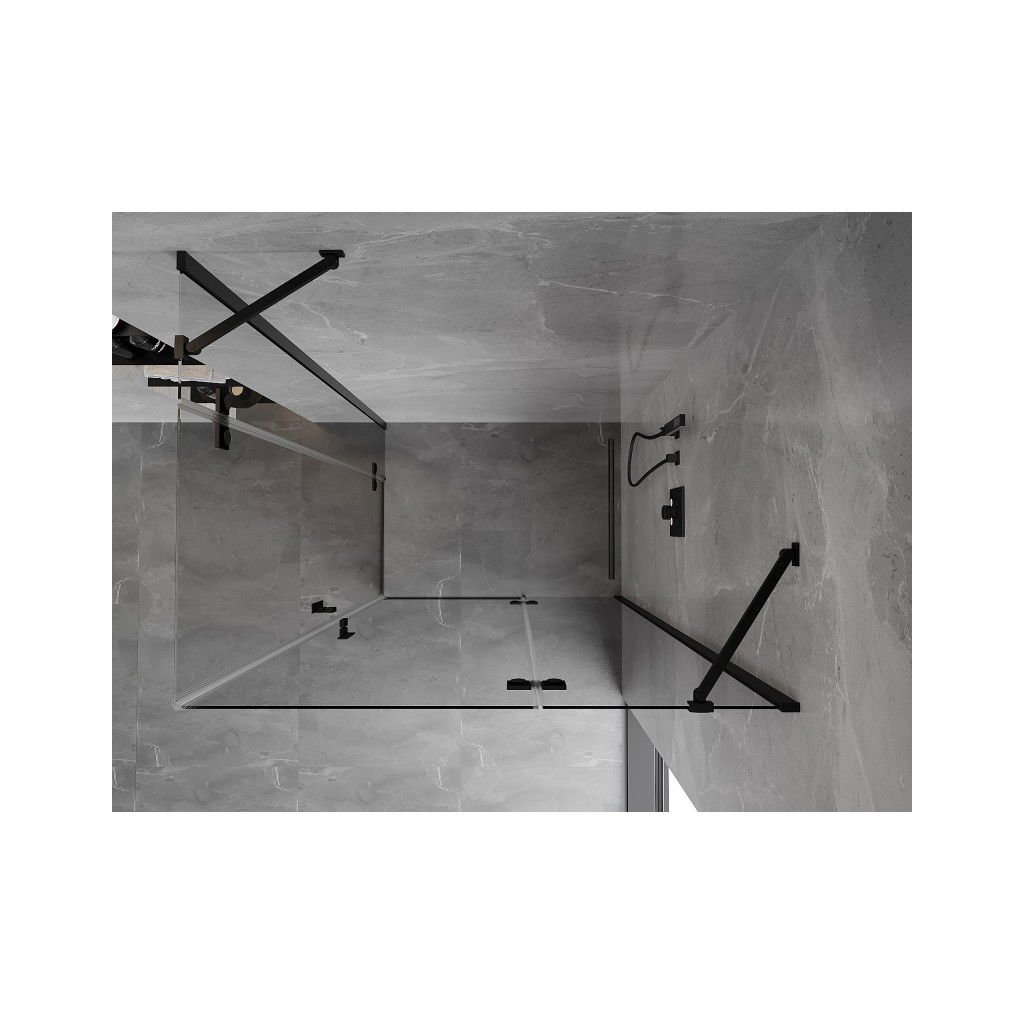 Mexen Mist-H Duo, 2-krídlový výklopný sprchový kút 70 x 85 cm, číre sklo, čierny profil, 8A5-070L-085P-70-00