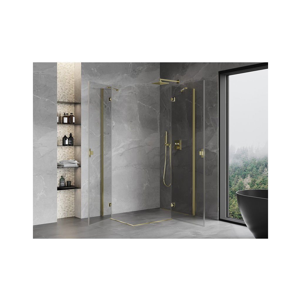 Mexen Mist-H Duo, 2-krídlový výklopný sprchový kút 75 x 85 cm, číre sklo, zlatý lesklý profil, 8A5-075L-085P-50-00