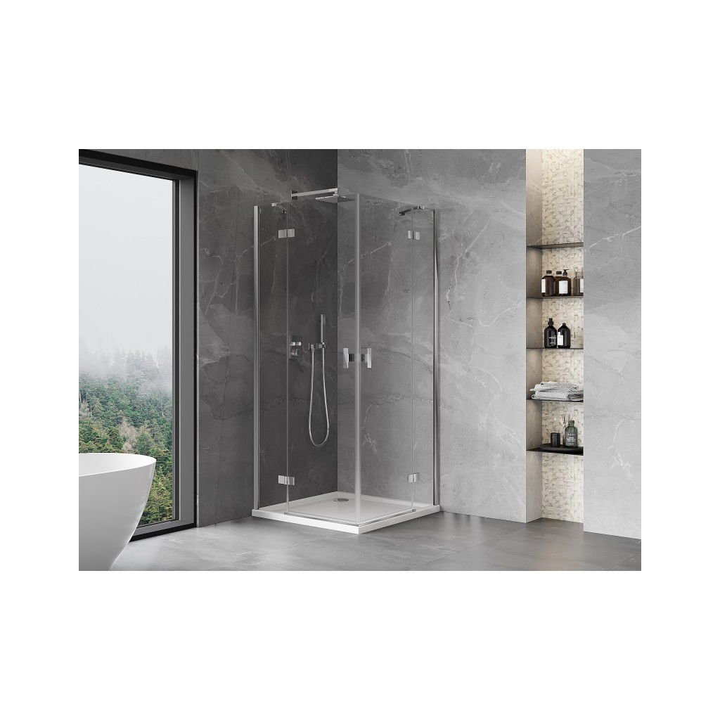 Mexen Mist-H Duo, 2-krídlový výklopný sprchový kút 80 x 80 cm, číre sklo, chrómový profil, 8A5-080L-080P-01-00
