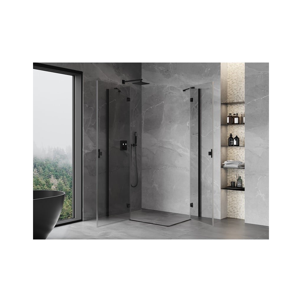 Mexen Mist-H Duo, 2-krídlový výklopný sprchový kút 85 x 70 cm, číre sklo, čierny profil, 8A5-085L-070P-70-00