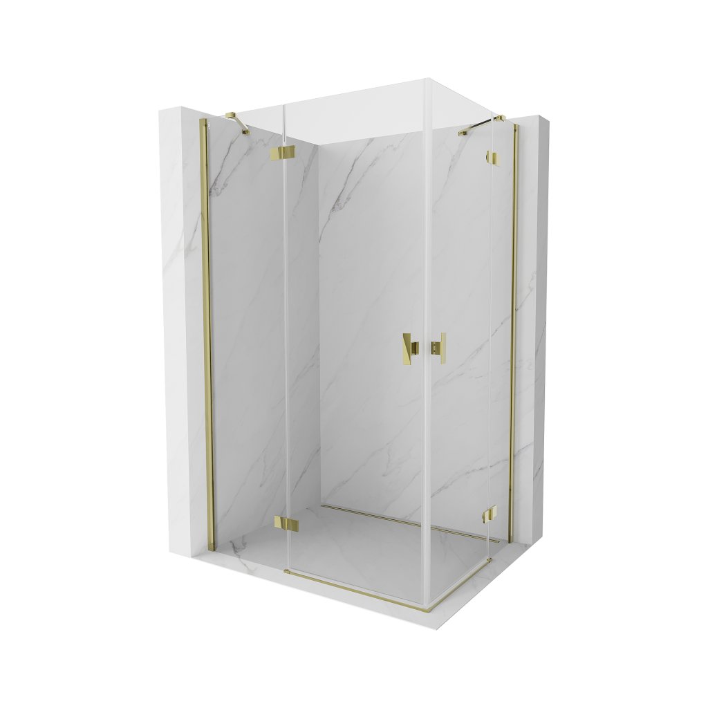 Mexen Mist-H Duo, 2-krídlový výklopný sprchový kút 85 x 70 cm, číre sklo, zlatý lesklý profil, 8A5-085L-070P-50-00