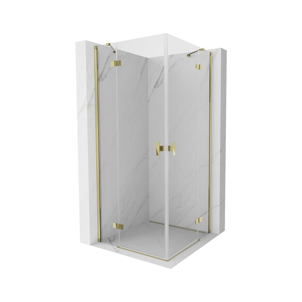 Mexen Mist-H Duo, 2-krídlový výklopný sprchový kút 85 x 85 cm, číre sklo, zlatý lesklý profil, 8A5-085L-085P-50-00