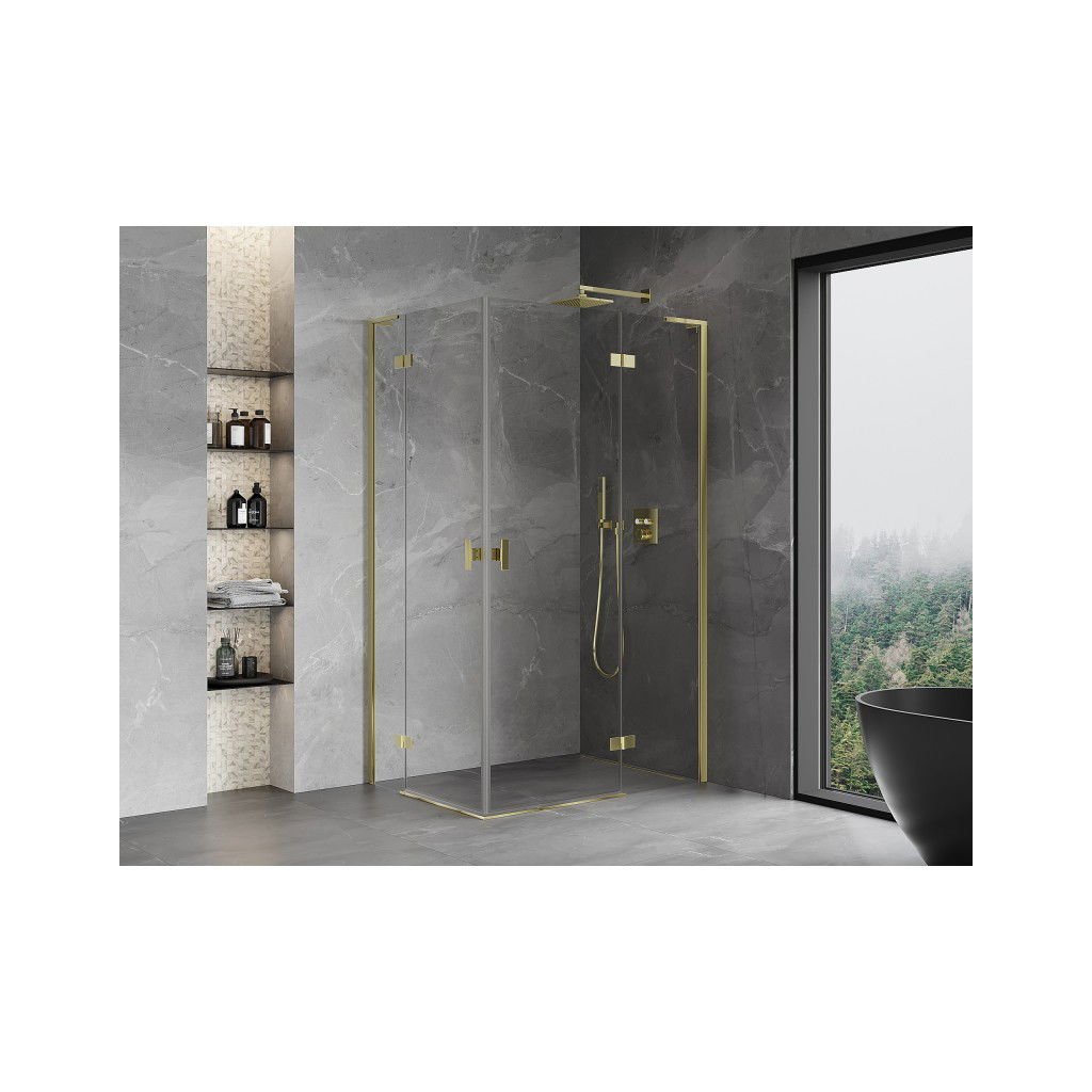 Mexen Mist-H L Duo, 2-krídlový sprchový kút 100 x 105 cm, číre sklo, zlatý lesklý profil, 8A5L-100L-105P-50-00