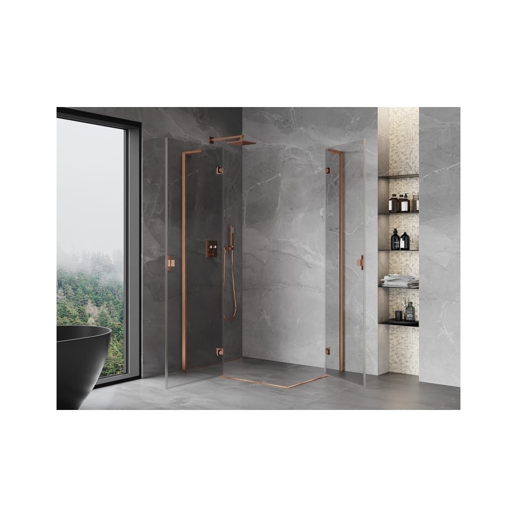 Mexen Mist-H L Duo, 2-krídlový sprchový kút 110 x 80 cm, číre sklo, medený matný profil, 8A5L-110L-080P-65-00