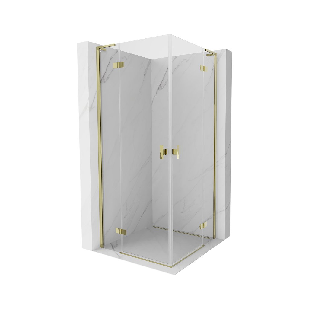 Mexen Mist-H L Duo, 2-krídlový sprchový kút 70 x 70 cm, číre sklo, zlatý lesklý profil, 8A5L-070L-070P-50-00