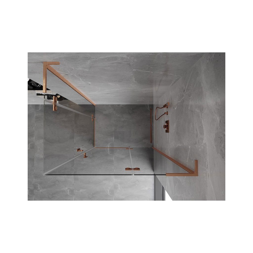 Mexen Mist-H L Duo, 2-krídlový sprchový kút 70 x 75 cm, číre sklo, medený matný profil, 8A5L-070L-075P-65-00