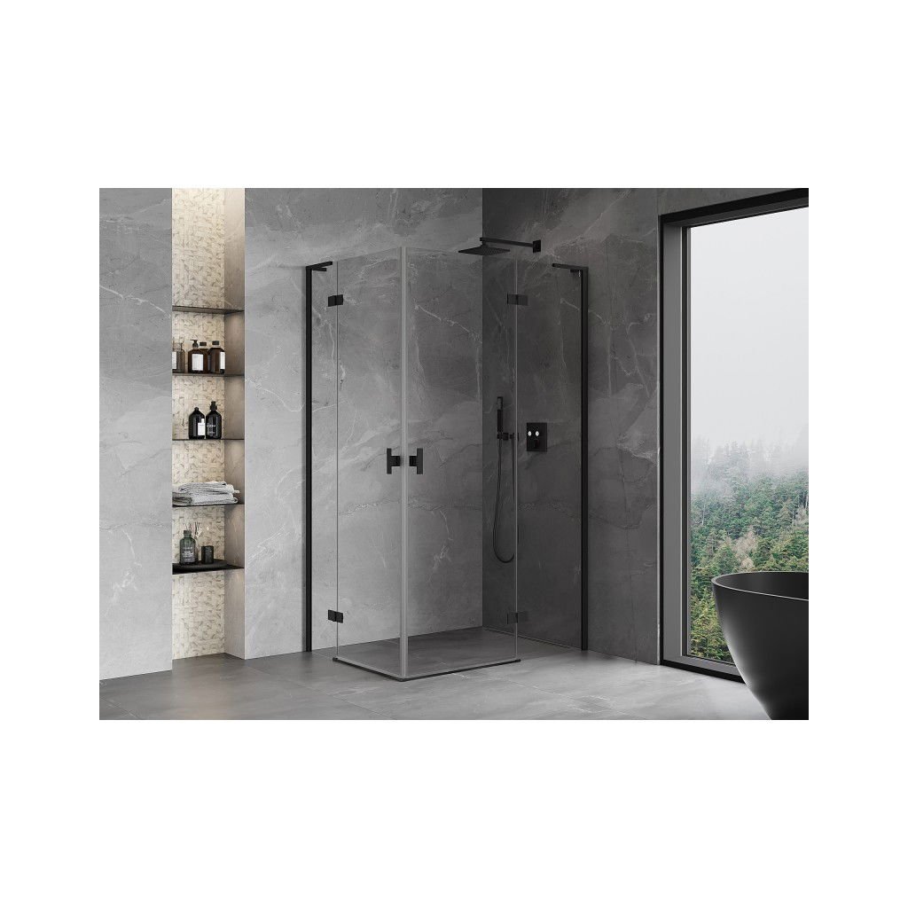 Mexen Mist-H L Duo, 2-krídlový sprchový kút 85 x 100 cm, číre sklo, čierny profil, 8A5L-085L-100P-70-00