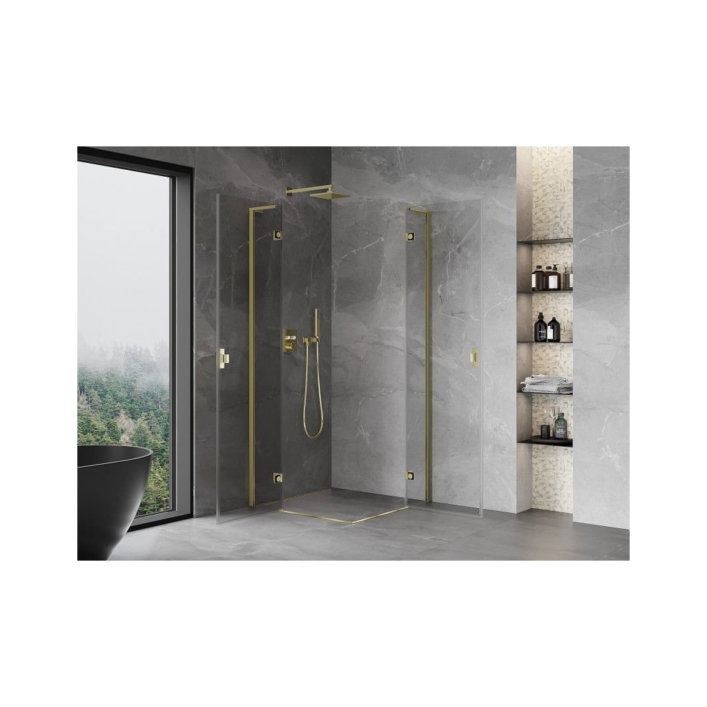 Mexen Mist-H L Duo, 2-krídlový sprchový kút 85 x 85 cm, číre sklo, zlatý lesklý profil, 8A5L-085L-085P-50-00
