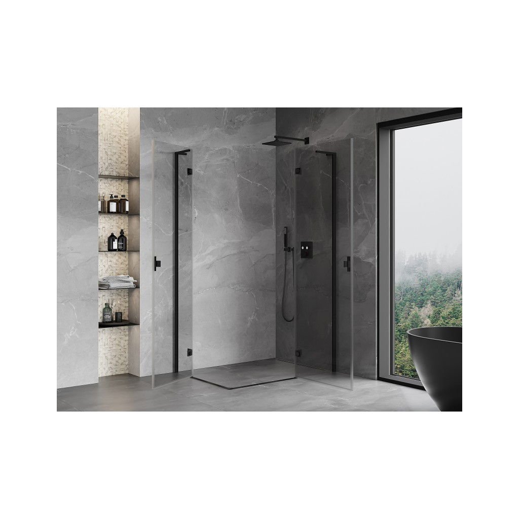 Mexen Mist-H L Duo, 2-krídlový sprchový kút 85 x 90 cm, číre sklo, čierny profil, 8A5L-085L-090P-70-00