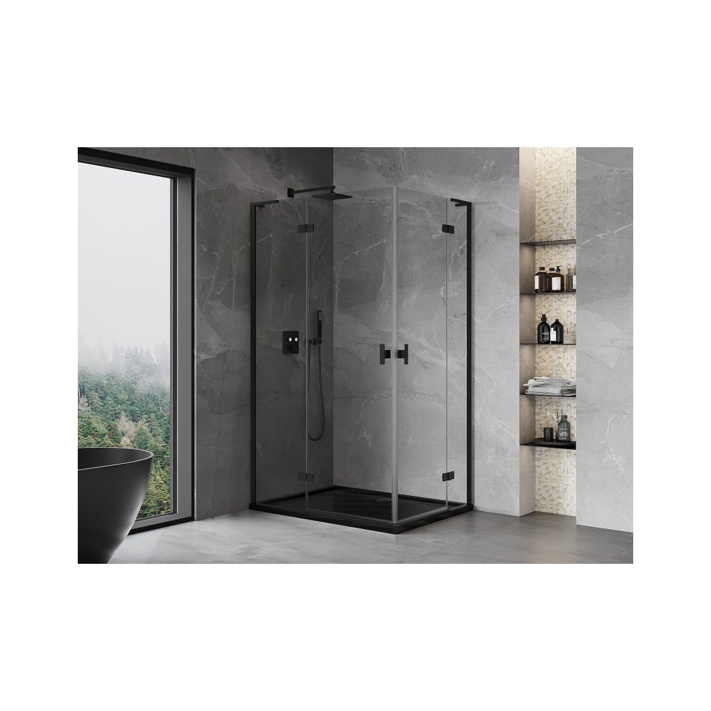 Mexen Mist-H L Duo, 2-krídlový sprchový kút 90 x 85 cm, číre sklo, čierny profil, 8A5L-090L-085P-70-00