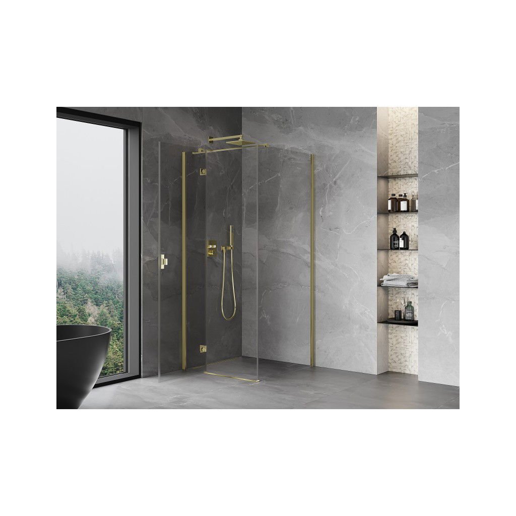 Mexen Mist H T, sprchový kút s výklopnými dverami ľavý 120 x 120 cm, číre sklo, zlatá, 8A5T-120-120-50-00-L