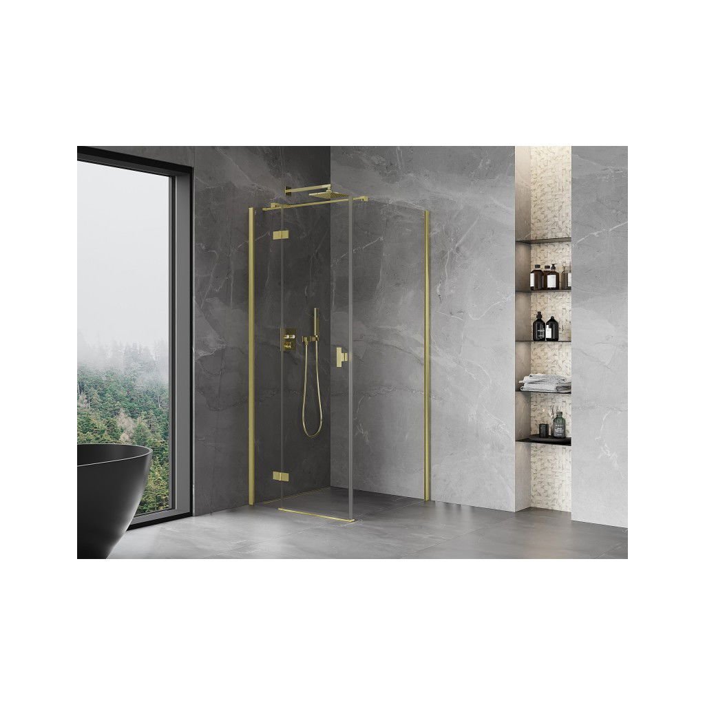 Mexen Mist H T, sprchový kút s výklopnými dverami ľavý 70 x 70 cm, číre sklo, zlatá matná, 8A5T-070-070-55-00-L