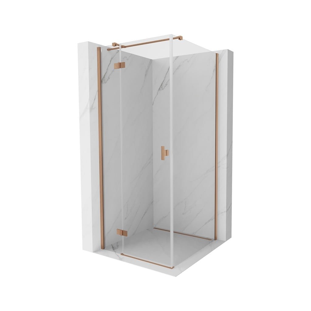 Mexen Mist H T, sprchový kút s výklopnými dverami ľavý 80 x 80 cm, číre sklo, medená matná, 8A5T-080-080-65-00-L
