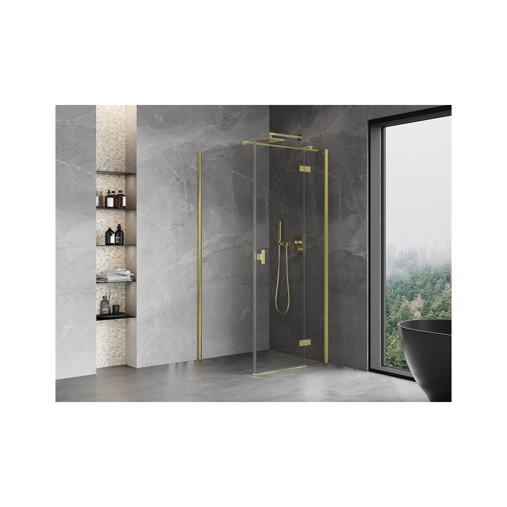 Mexen Mist H T, sprchový kút s výklopnými dverami pravý 110 x 110 cm, číre sklo, zlatá matná, 8A5T-110-110-55-00-P