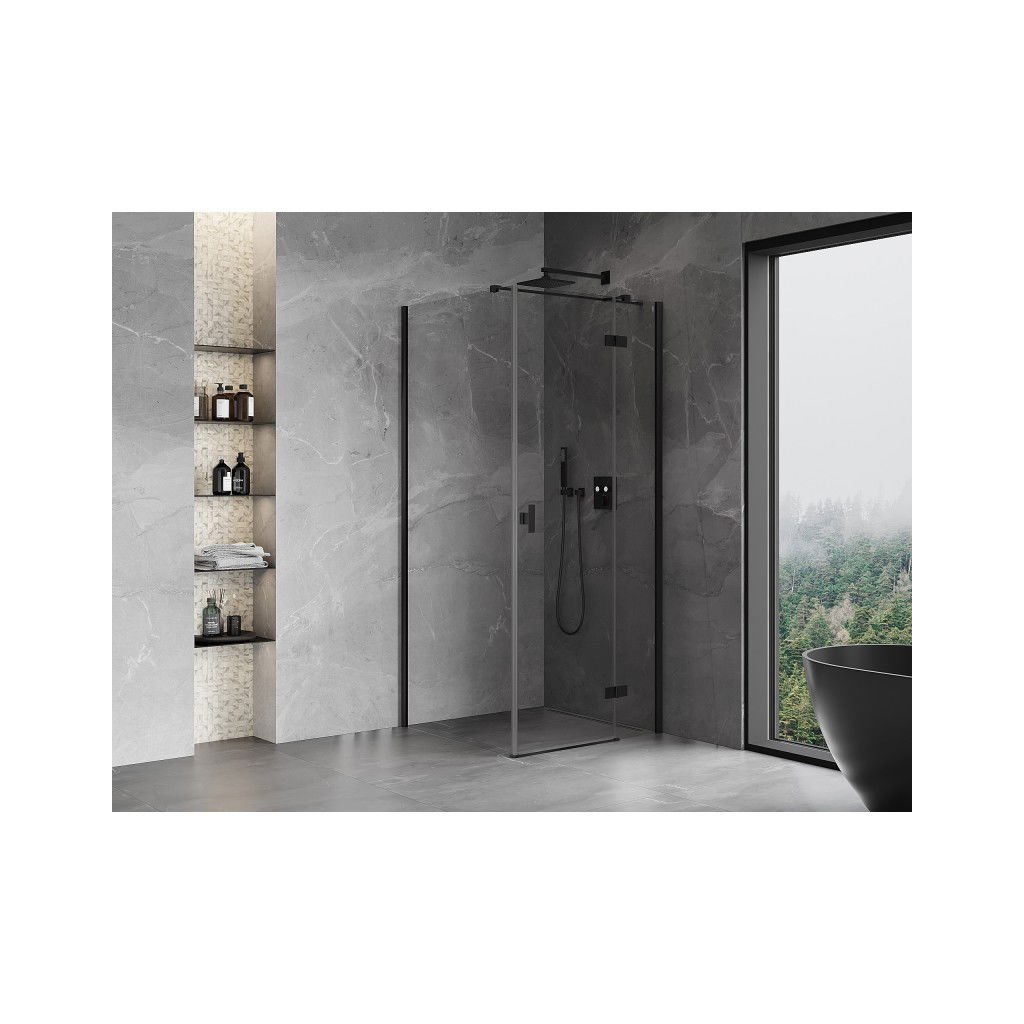 Mexen Mist H T, sprchový kút s výklopnými dverami pravý 80 x 80 cm, číre sklo, čierny profil, 8A5T-080-080-70-00-P
