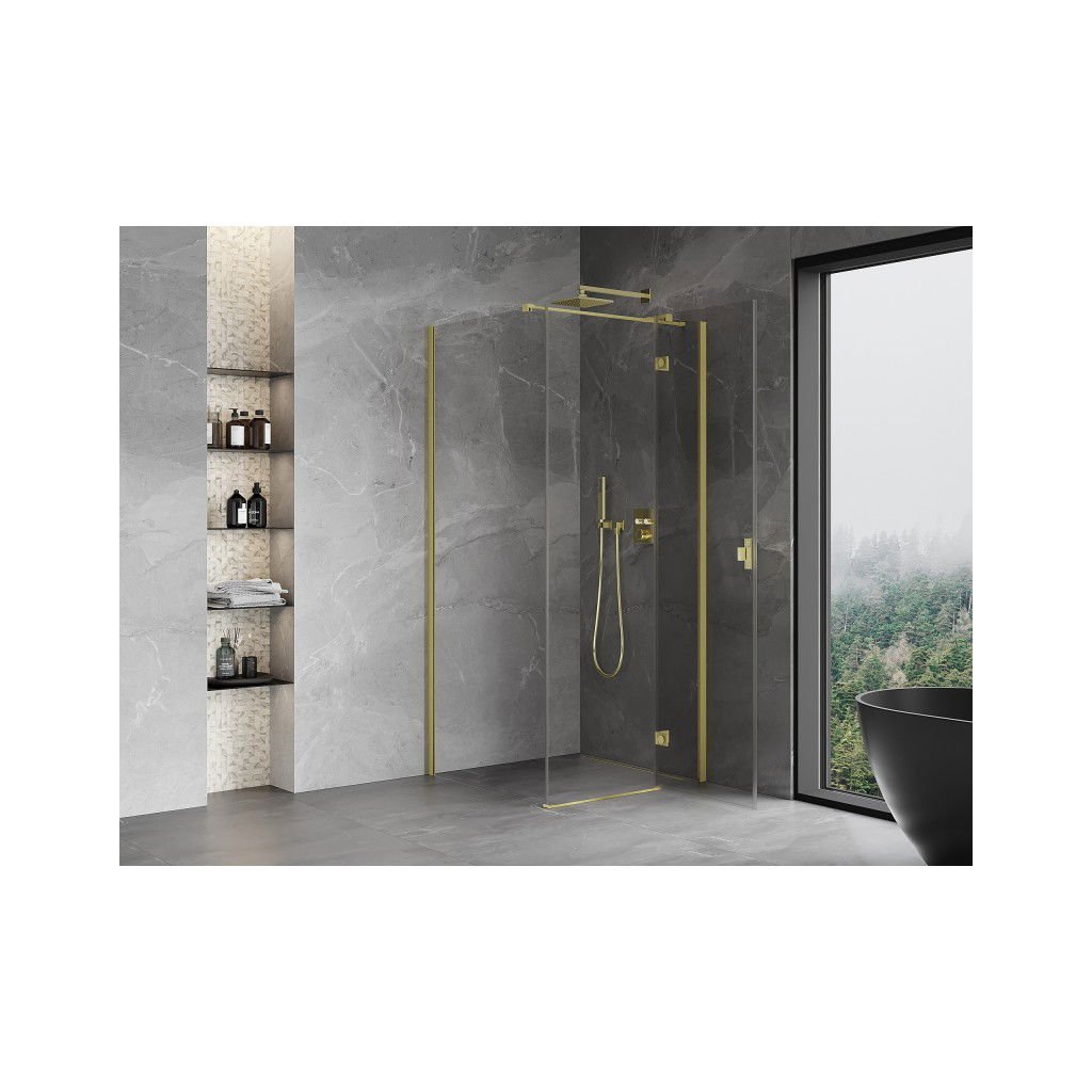 Mexen Mist H T, sprchový kút s výklopnými dverami pravý 85 x 85 cm, číre sklo, zlatá matná, 8A5T-085-085-55-00-P