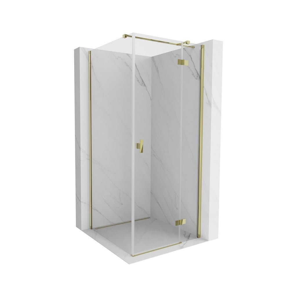 Mexen Mist H T, sprchový kút s výklopnými dverami pravý 90 x 90 cm, číre sklo, zlatá, 8A5T-090-090-50-00-P