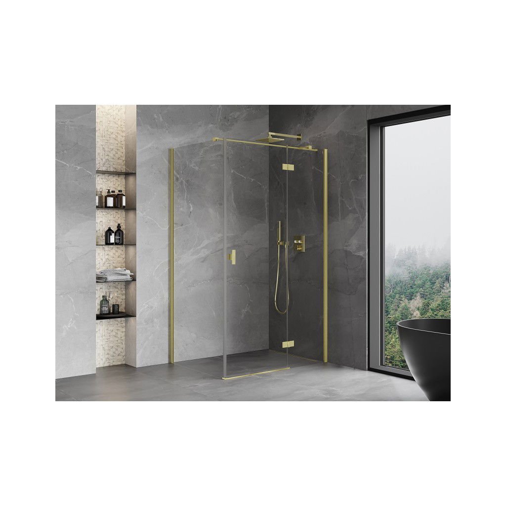 Mexen Mist H T, sprchový kút s výklopnými dverami pravý 90 x 95 cm, číre sklo, zlatá matná, 8A5T-090-095-55-00-P