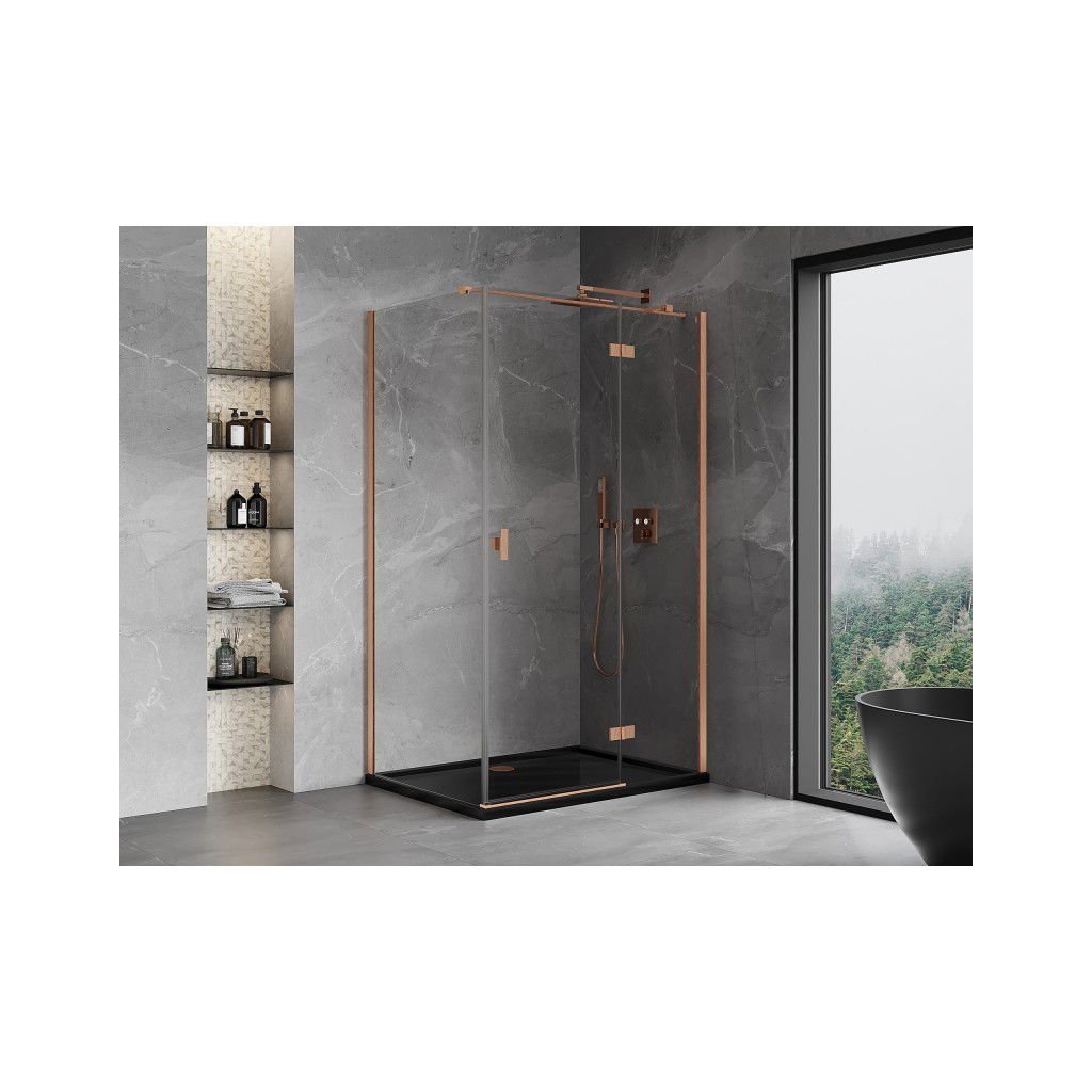 Mexen Mist H T, sprchový kút s výklopnými dverami pravý 95 x 85 cm, číre sklo, medená matná, 8A5T-095-085-65-00-P