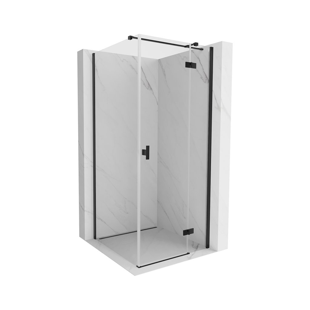 Mexen Mist H T, sprchový kút s výklopnými dverami pravý 95 x 95 cm, číre sklo, čierny profil, 8A5T-095-095-70-00-P