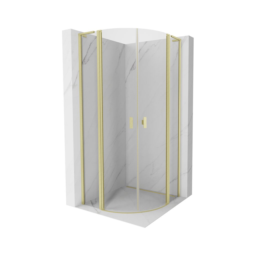 Mexen Mist L, štvrťkruhový sprchový kút s 2-krídlovými dverami, 100 x 100 cm, 8mm číre sklo, zlatý matný profil, 8A32L-100-100-55-00