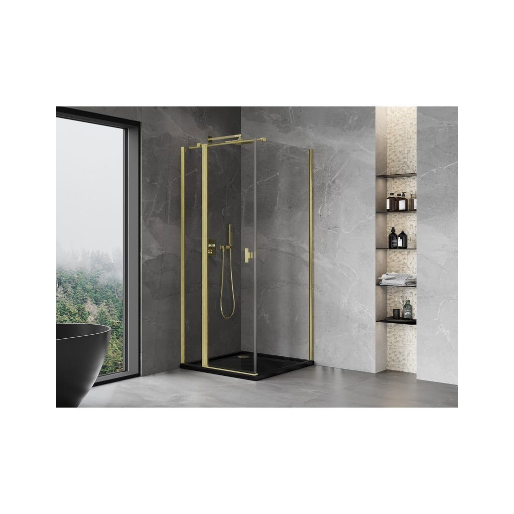 Mexen Mist T, 1-krídlový sprchový kút 110 x 110 cm, číre sklo, zlatá matná, 8A4T-110-110-55-00