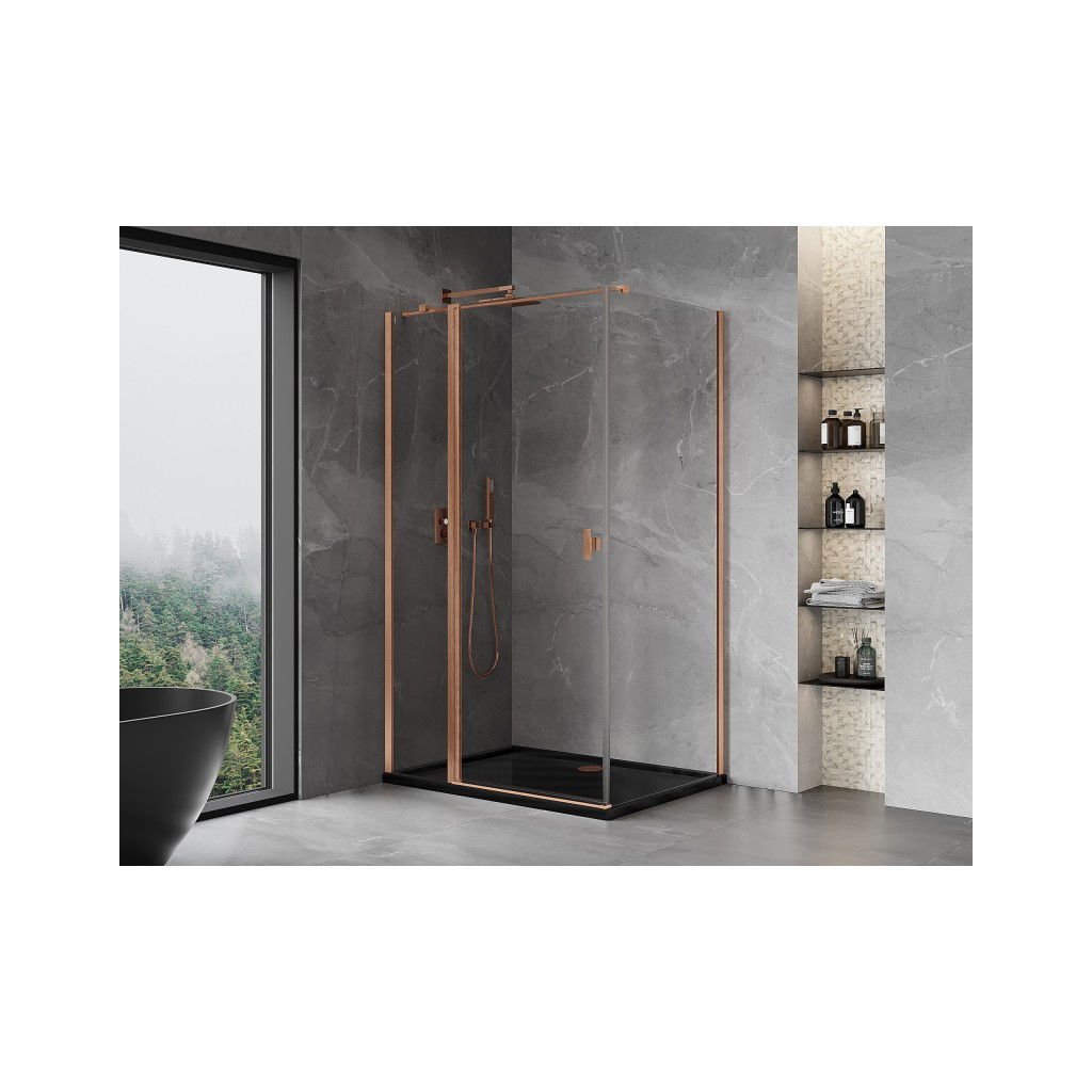 Mexen Mist T, sprchový kút s krídlovými dverami, 70 x 90 cm, 8mm číre sklo, medený profil, 8A4T-070-090-65-00