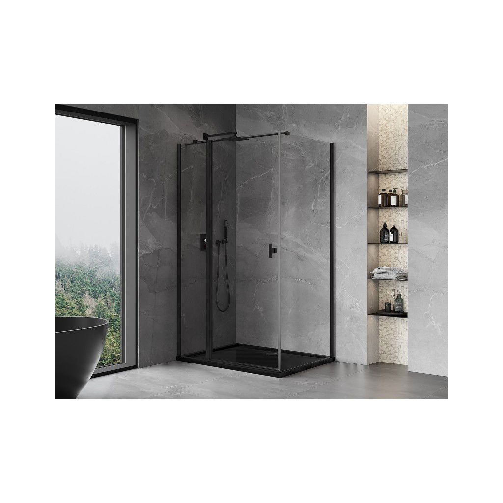 Mexen Mist T, sprchový kút s krídlovými dverami, 85 x 100 cm, 8mm číre sklo, čierny profil, 8A4T-085-100-70-00