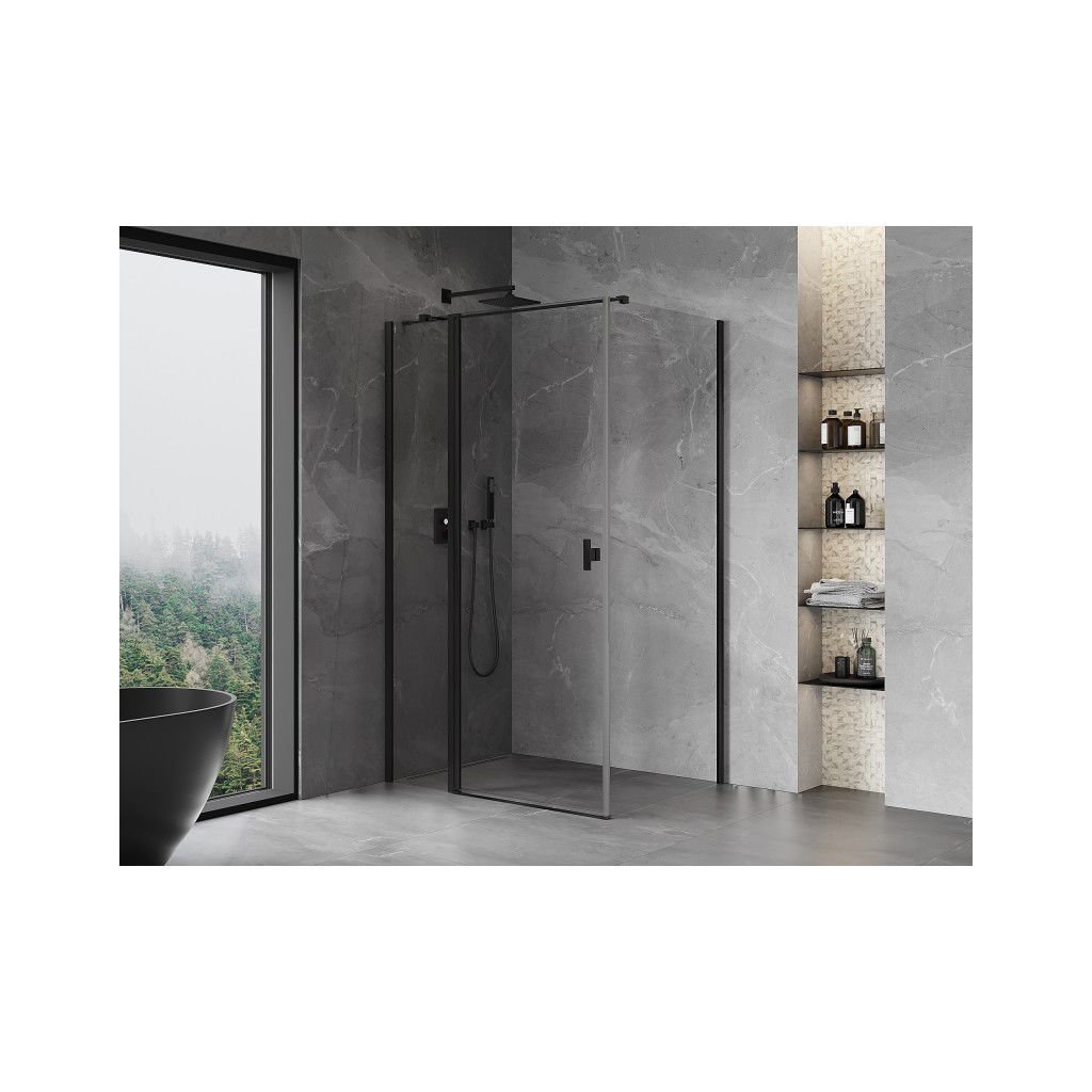 Mexen Mist T, sprchový kút s krídlovými dverami, 85 x 120 cm, 8mm číre sklo, čierny profil, 8A4T-085-120-70-00