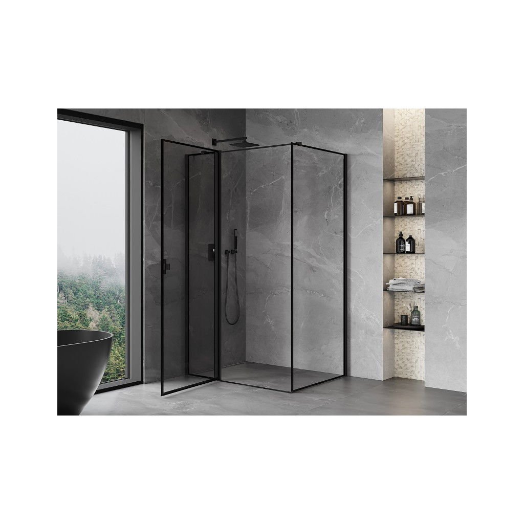 Mexen Mist T, sprchový kút s krídlovými dverami, ľavý, 70 x 95 cm, 8mm číre sklo, čierny profil, 8A4T-070-095-70-70-L