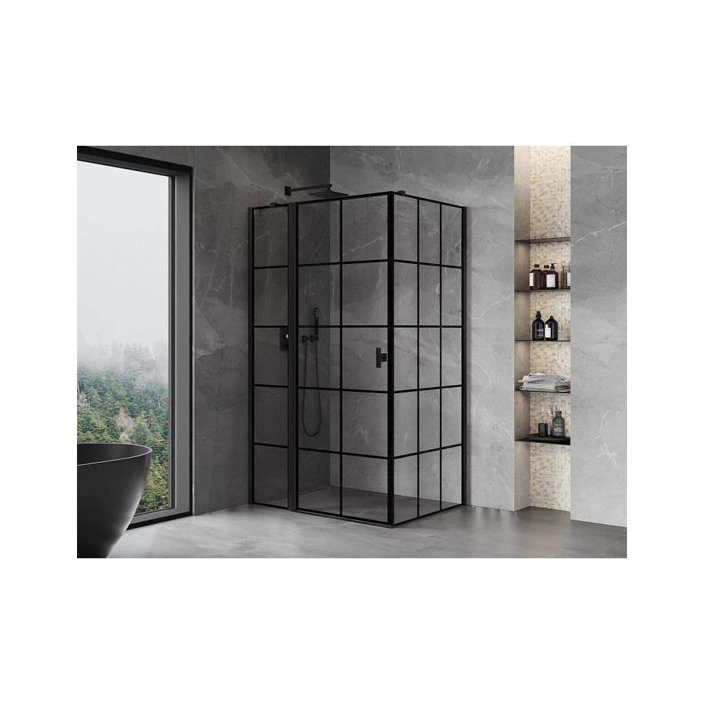 Mexen Mist T, sprchový kút s krídlovými dverami, ľavý, 80 x 115 cm, 8mm číre sklo, čierny profil, 8A4T-115-080-70-77-L