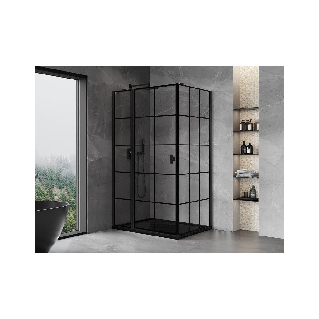 Mexen Mist T, sprchový kút s krídlovými dverami, ľavý, 80 x 90 cm, 8mm číre sklo, čierny profil, 8A4T-080-090-70-77-L