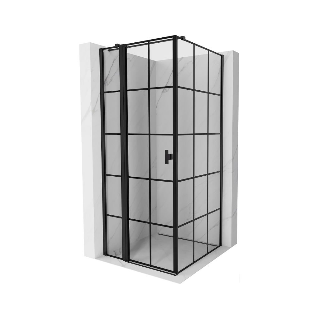 Mexen Mist T, sprchový kút s krídlovými dverami, ľavý, 90 x 90 cm, 8mm číre sklo, čierny profil, 8A4T-090-090-70-77-L