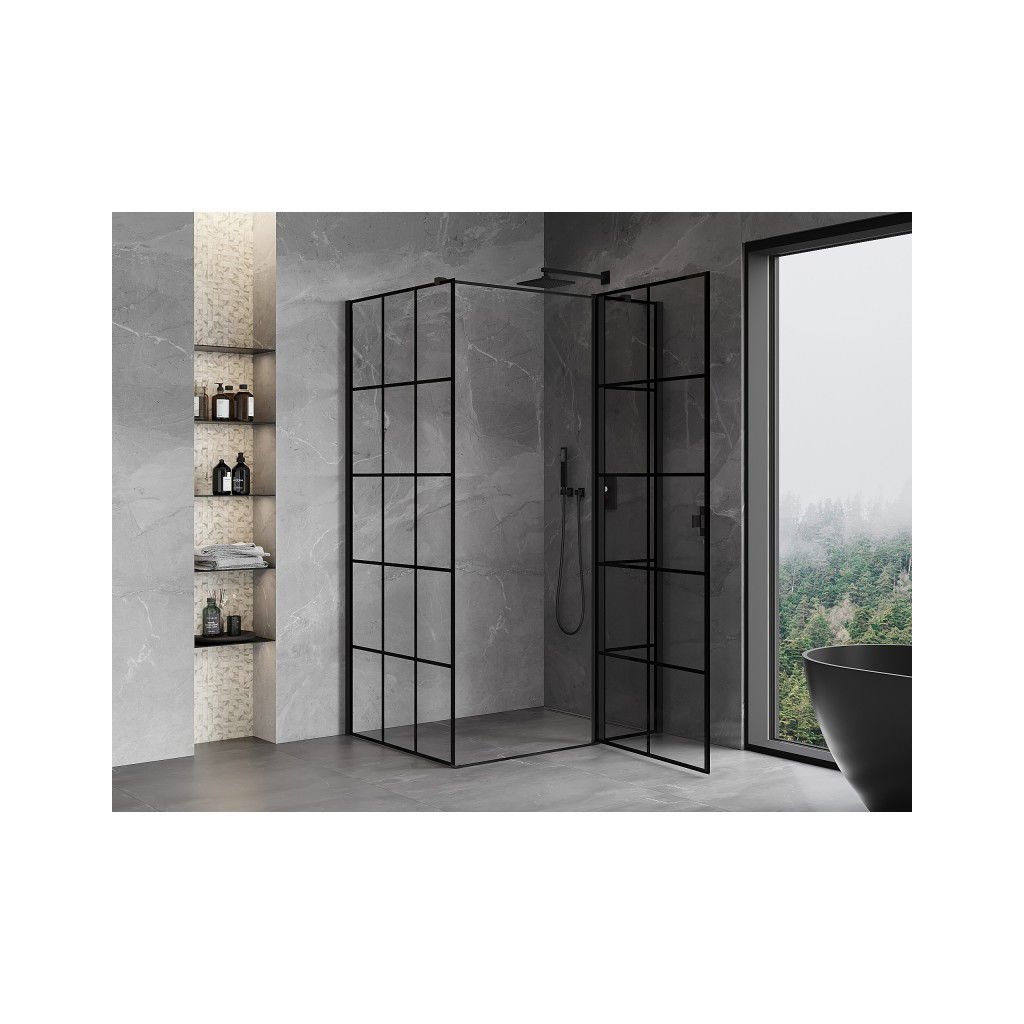 Mexen Mist T, sprchový kút s krídlovými dverami, pravý, 115 x 120 cm, 8mm číre sklo, čierny profil, 8A4T-115-120-70-77-P