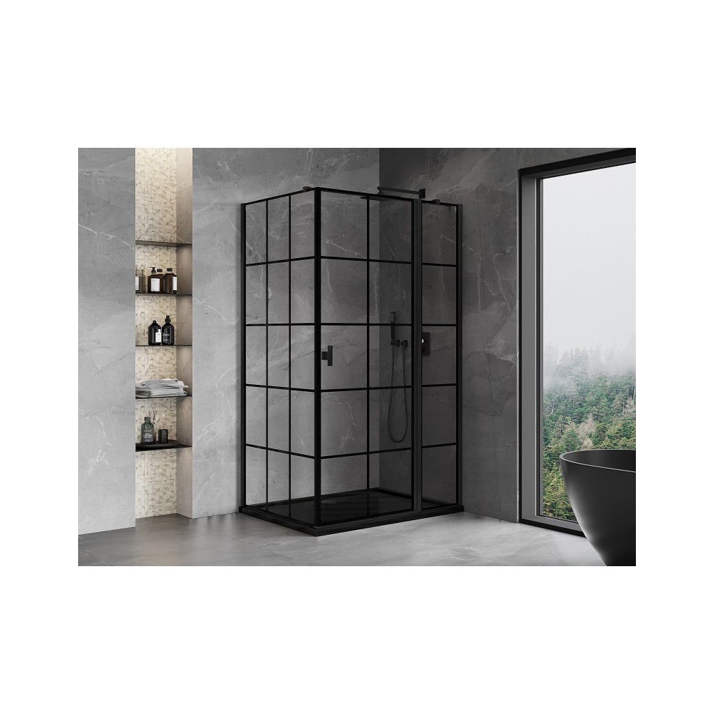 Mexen Mist T, sprchový kút s krídlovými dverami, pravý, 80 x 115 cm, 8mm číre sklo, čierny profil, 8A4T-115-080-70-77-P