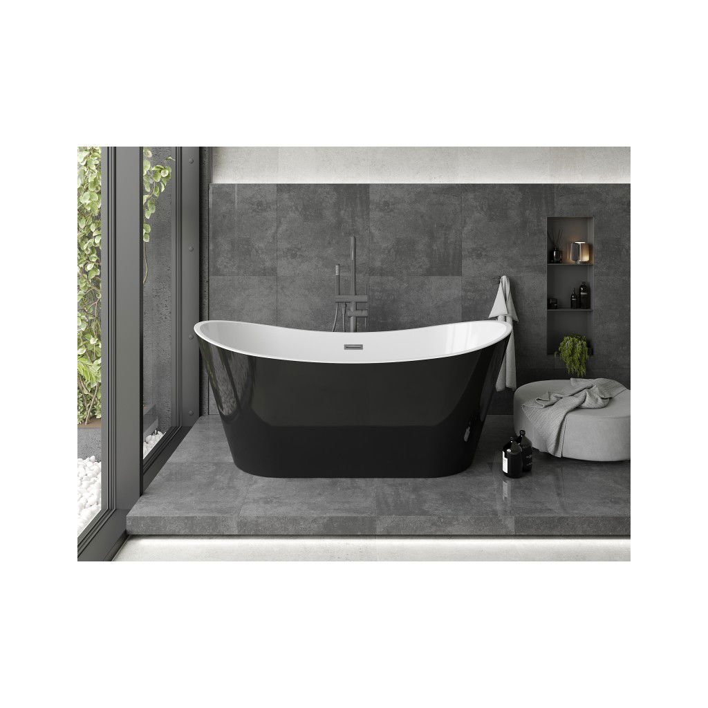Mexen Montana, voľne stojaca vaňa 150 x 75 cm, biela-čierna, brúsený grafit prepad, 52011507575-95