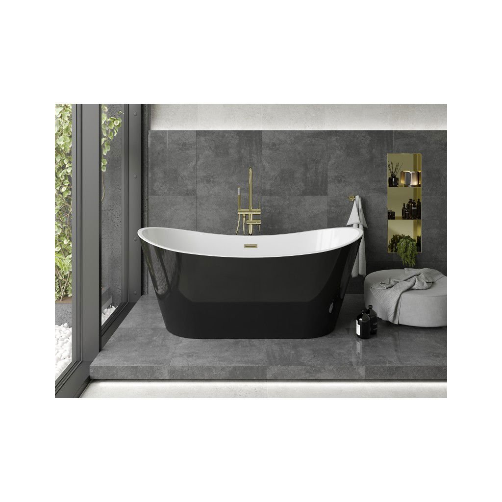 Mexen Montana, voľne stojaca vaňa 170 x 80 cm, biela-čierna, zlatý matný prepad, 52011708075-55